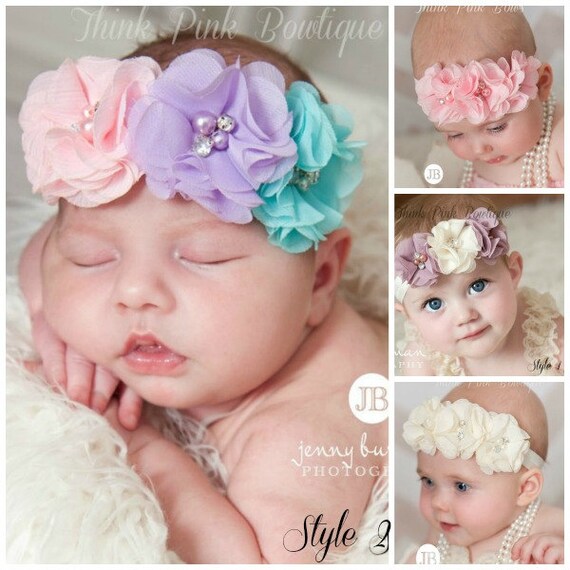 CHOOSE COLOE Baby Headbands,Easter Headband,Newborn Headband,Shabbby Chic Flower Headband, Chiffon Baby Headband, Baby Headbands,Hair Bows. by ThinkPinkBows