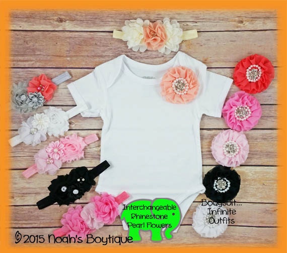 Cute Baby Girl Clothes - Rhinestone and Pearl Flower - Bodysuit Headband - Peach - Coral - Pink - Cute Baby Girl Shirt - Baby Shower Gift by NoahsBoytiques