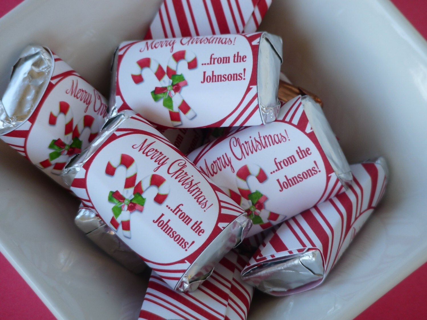 PERSONALIZED Mini Candy Bar Wrappers Christmas Holidays - Custom Made Chocolate Bar Holiday Gifts - Red Candy Cane Striped - CH002