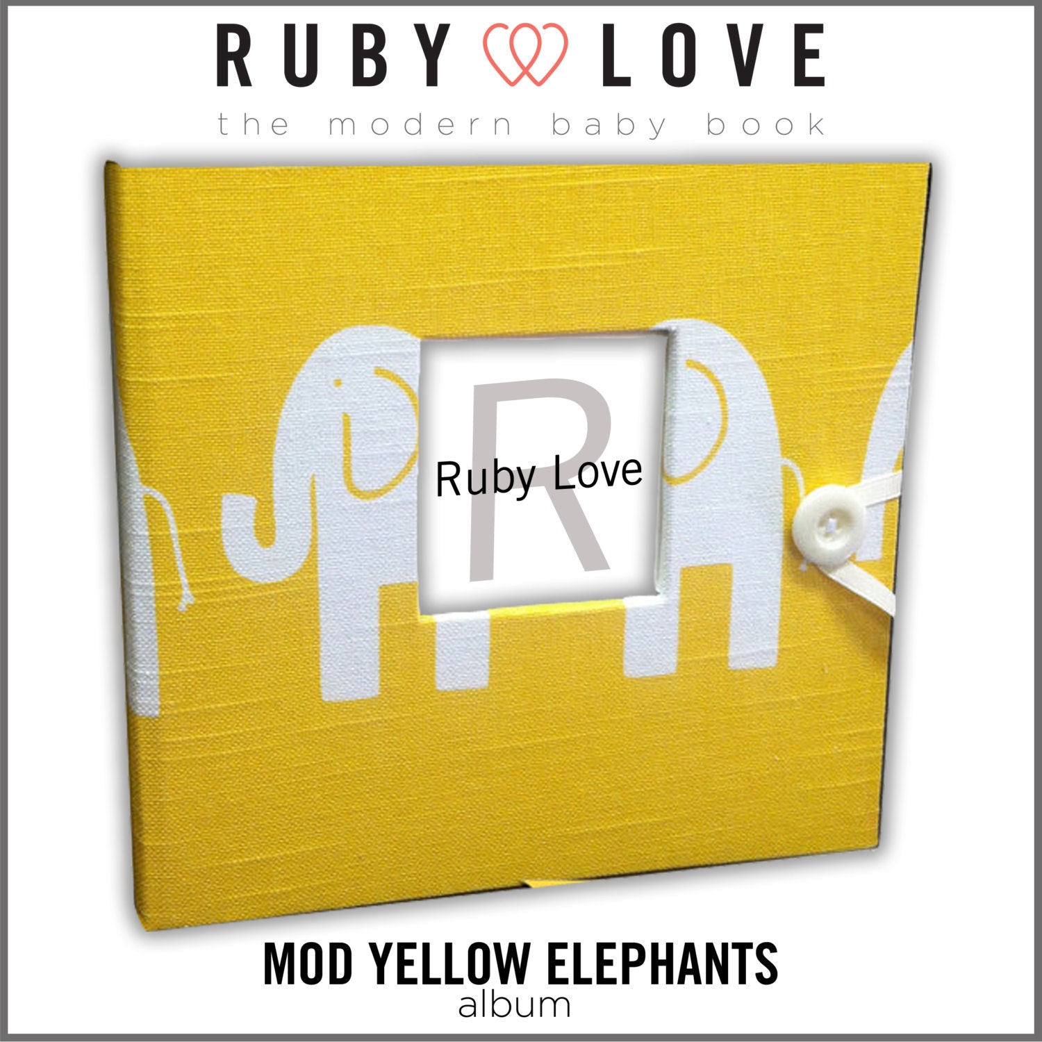 Baby Book . Baby Memory Book . MOD YELLOW ELEPHANTS Album . Ruby Love Modern Baby Book