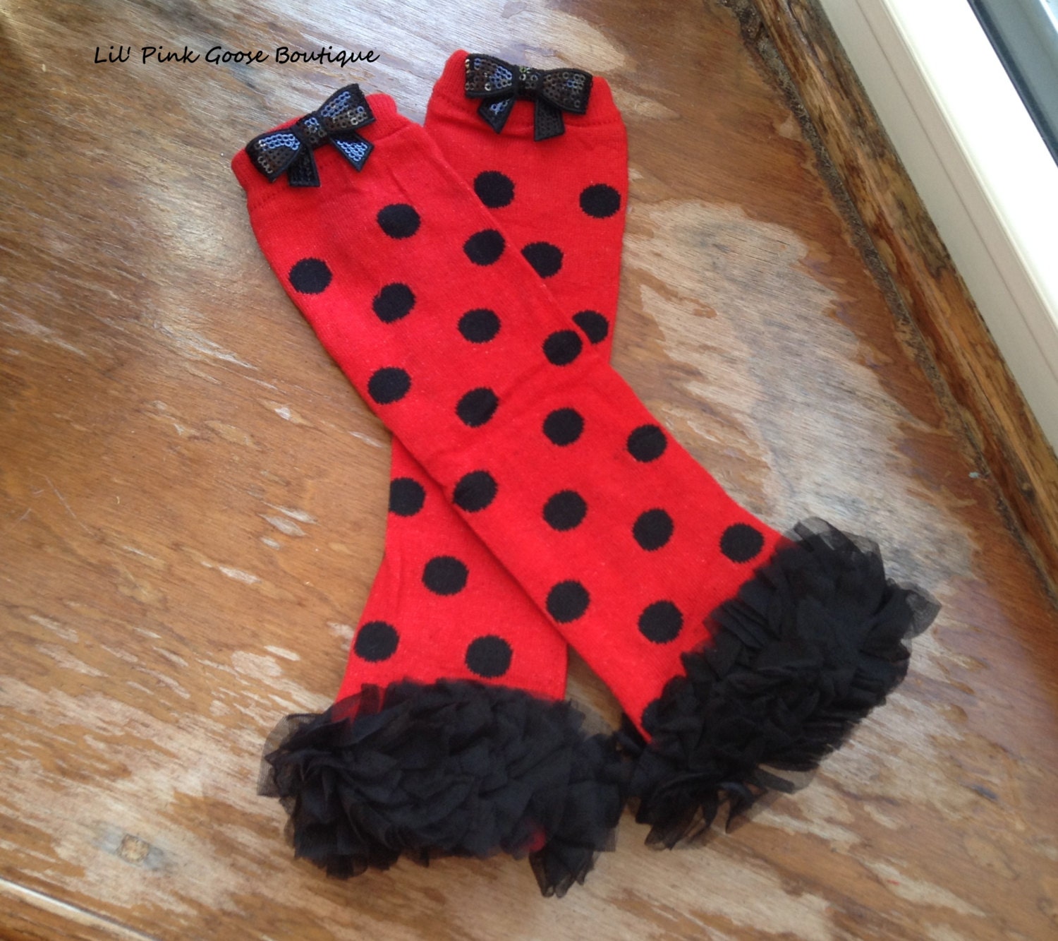 , for sale in Etsy Store LilPinkGooseleg warmers, tutu leggings, ruffle leg warmers, girl legwarmers, legwarmers, Halloween leggings, toddler leg warmers, infant leggings, ruffle leggings, costume leg warmers, leggings, ladybug costume, ladybug leg warmers