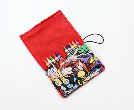Marvel Crayon Holder Wrap SALE, Crayon Roll Up with Cover, Children Easter Stuffer Gift, Birthday Party Favor, Travel Wrap