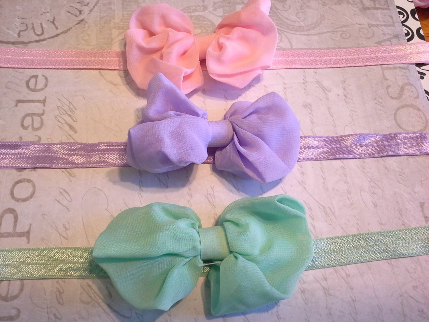 set 3 headbands, baby headbands, newborn headbands, baptism headband, bow headbands, vintage headbands, dainty headbands, chiffon headbands