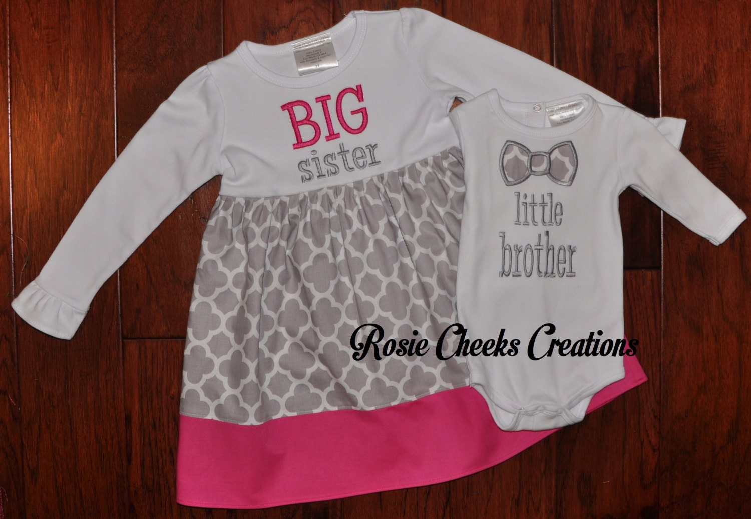 , for sale in Etsy Store RosieCheeksCreationsBaby Shower Gift, Baby Gift, Big Sister Dress, Big SIster Gift, Little Brother, sibling matching, big sister, matching outfits, bow tie baby