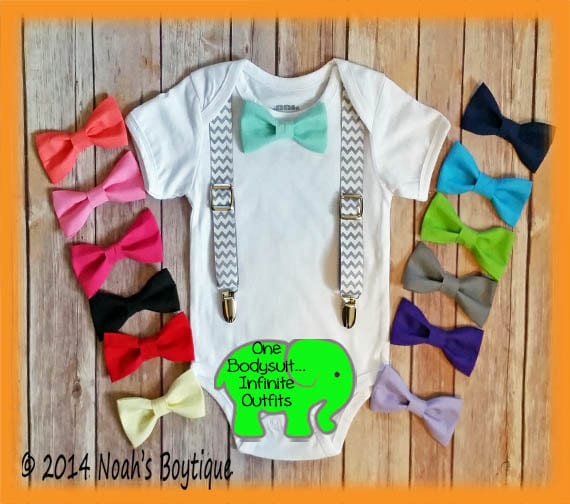 Baby Boy Spring Outfit - Summer Clothes - Baby Boy Clothes - Boy Shirt - Newborn Boy- Grey Chevron - Toddler Suspender - Bow Tie by NoahsBoytiques