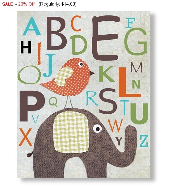 Baby nursery print - childrens art print - kids room decor - alphabet - Elephant - Birds - Best Friends Alphabet print from Paris by GalerieAnais