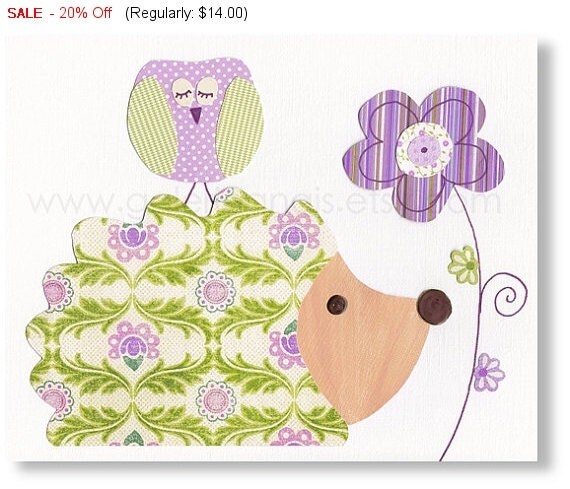 hedgehog nursery Baby Girl nursery decor Purple and green nursery art kids wall art nursery owl baby nurseyr art - Jolie Lady by GalerieAnais