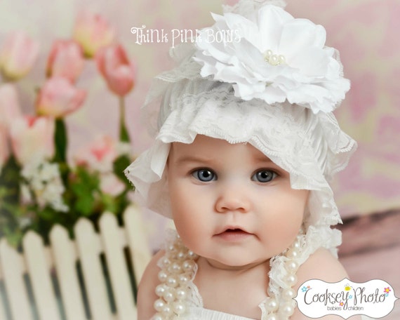 Lace hat, baby bonnet, petti lace hat, white bonnet, vintage inspired lace hat. by ThinkPinkBows