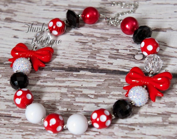Minnie Mouse Chunky Necklace, Girls Chunky Necklace, Girls Bubblegum Necklace, Girls Necklace ,Chunky Bead Necklace, Minnie Necklace. N3 by ThinkPinkBows
