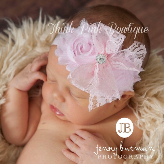 Pink Baby Headband,baby headbands, Newborn Headband, Infant Headband Baby, Girl Headband Baby, shabby chic Headband, Easter Headband. by ThinkPinkBows