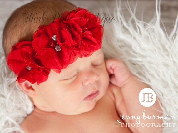 Red Baby Headband, Baby Headbands Baby headband,Christmas Headband,Newborn Headband,Valentines Headband, Infant headband,Flower Headband. by ThinkPinkBows