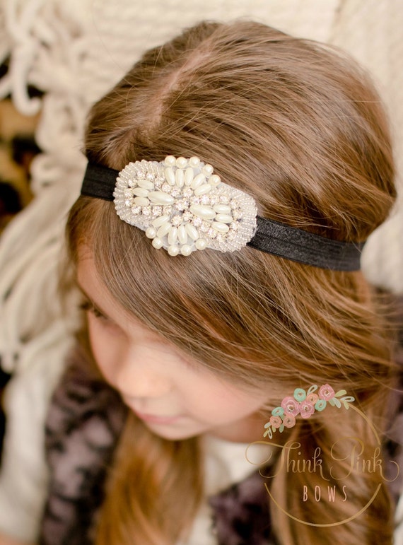 Rhinestone headband,baby headbands, Christening Headband, Baptism headband, Bling Headband, pearls headbands, flower girl headband. by ThinkPinkBows
