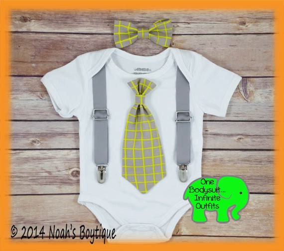 Shirts for Baby Boys - Newborn Outfit - Boy Clothing - Photo Prop - Grey Gray and Yellow - Baby Tie Outfit - Summer - Toddler Boy - Shirt by NoahsBoytiques
