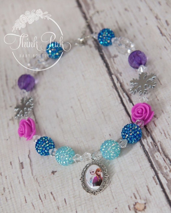 Frozen Girls Chunky Necklace, Elsa and Ana Frozen inspired Girls Bubblegum Chunky Necklace, 5 STYLES to choose from, Bubble gum Necklacs. by ThinkPinkBows