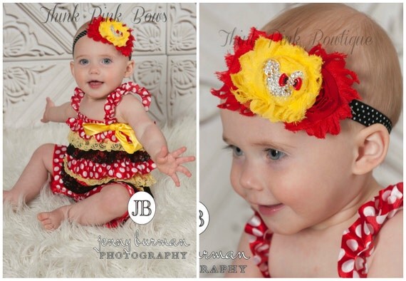 SET Minnie Mouse petti lace romper SET,Minnie Mouse Headband, Baby headbands, baby girl headband,lace romper, petti romper, baby romper. by ThinkPinkBows