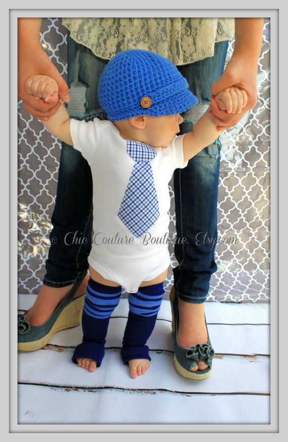 Baby Boy Christmas Holiday Tie Bodysuit, Baby Blue Non-Personalized Sapphire, Blue, Navy Plaid. 1st Birthday Outfit, Cake Smash Outfit, Gift by ChicCoutureBoutique