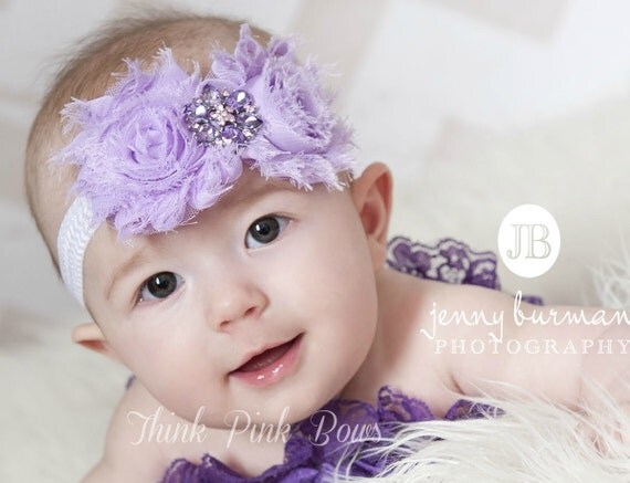 Baby Headband,Lavender baby headband,newborn headband,shabby chic headband,chevron headband,baby girl headband,toddler,girls,baby bows. by ThinkPinkBows