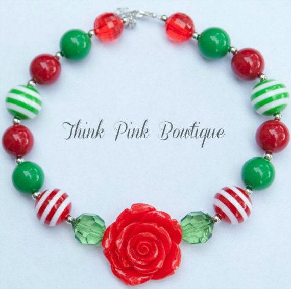 Christmas Necklace, Girls Chunky Necklace, Girls Bubblegum Chunky Necklace, Girls Chunky Bubble Gum Bead Necklace,Children Necklace. by ThinkPinkBows