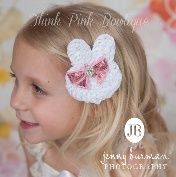 Easter Bunny Hair Bow, Easter Hair Cip, Baby Hair bows, Hair Bows,Hair Clips, Clippies,Easter Hair Bows, CHOOSE COLOR. by ThinkPinkBows