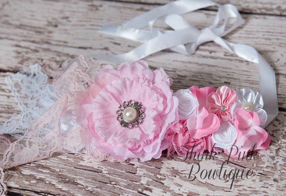 Flower Sash Belt, Pink Flower sash, Flower Belt, Girls sash, Wedding Sash, Maternity sash belt , Flower girl sash, White Flower sash belt. by ThinkPinkBows