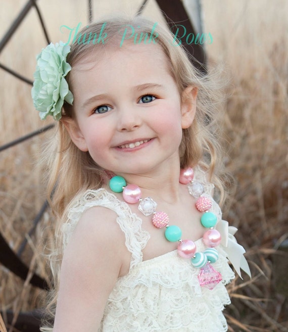 Girls Chunky Necklace, Girls Bubblegum Chunky Necklace, pink and Aqua Chunky necklace,Girls Bubble Gum Bead Necklace,Children Necklace. by ThinkPinkBows