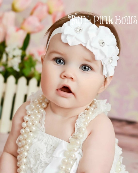 White baby headband, flower headband, baby Headbands,Baptism Headband, Christening headband,Flower Headband, Baby Headband,Baby Bows by ThinkPinkBows