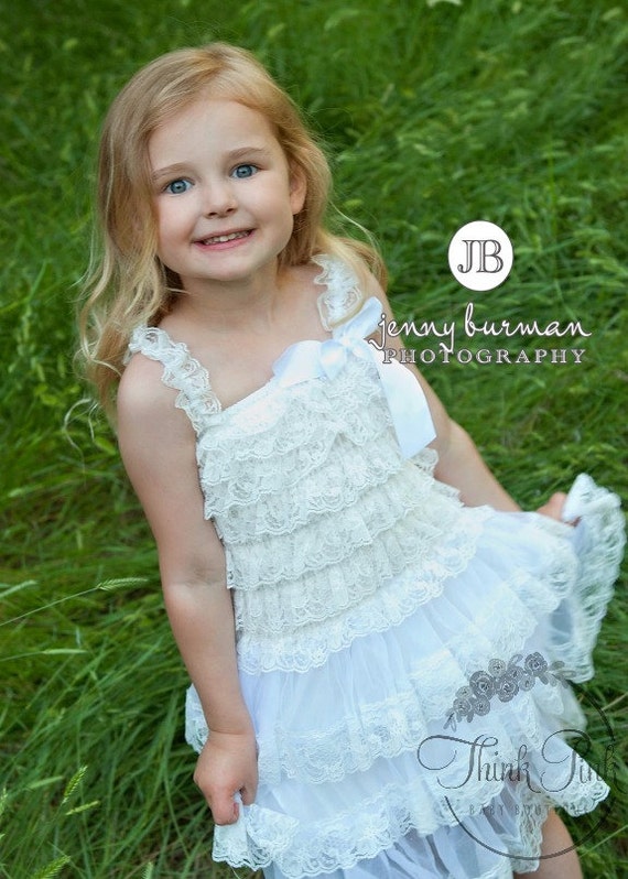 White Flower girl lace dress ,baptims dress,1st birthday outfit, Flower girl dresses,Rustic flower girl dress,baby dress,baptism dress. by ThinkPinkBows